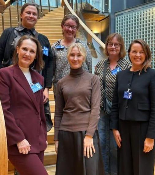 Kuvassa: Audionomiyhdistyksen hallituslaisia, Terveydenhoitojaliiton pj Kirsi Grym ja Sthl:n audionomijäsen Kati Pesonen-Simonen, Kuuloliiton kehittämispäällikkö Anniina Lavikainen, Metropolia amk:n…